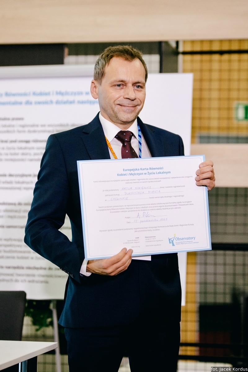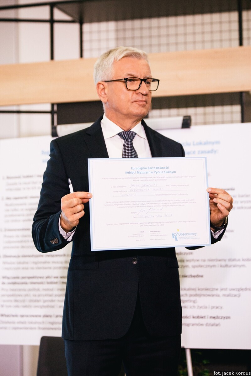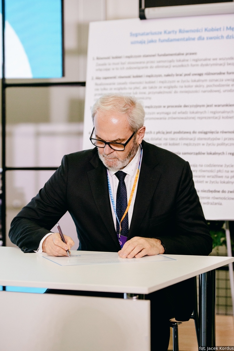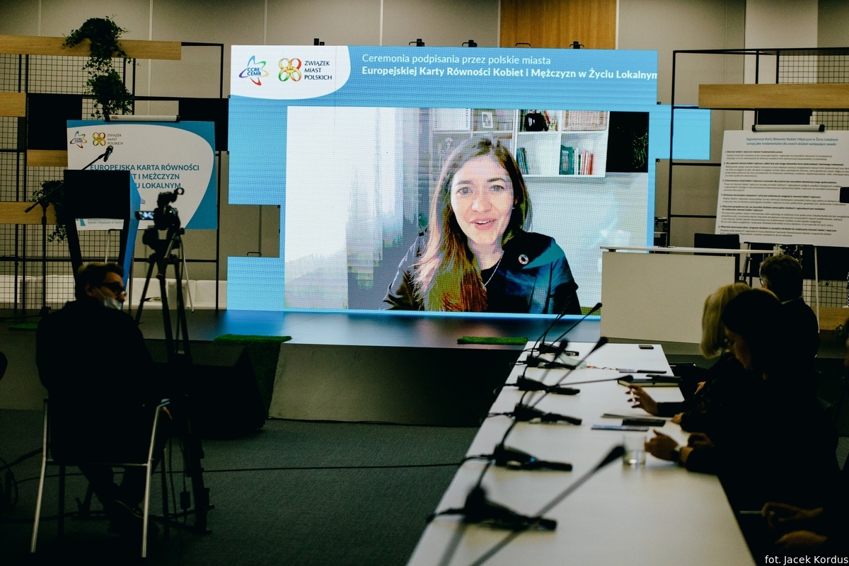 Ceremonię podpisania Europejskiej Karty Równości Kobiet i Mężczyzn w Życiu Lokalnym zorganizowały 11 października br. Rada Gmin i Regionów Europy CEMR oraz Związek Miast Polskich. Była to odpowiedź na pojawiające się w ostatnim czasie coraz liczniejsze sygnały z miast członkowskich o chęci przyjęcia przez nie Karty. Owo rosnące zainteresowanie polskich samorządów obserwuje także od 2020 roku Komisja Stała ds. Równouprawnienia, działająca w ramach Rady Gmin i Regionów Europy (CEMR). Jej członkami są przedstawicielki i przedstawiciele władz lokalnych i regionalnych z całej Europy. Jednocześnie do Komisji docierały informacje o problemach administracyjnych, z jakimi borykają się niektóre polskie samorządy, np. Poznań, w związku z przyjęciem Karty.