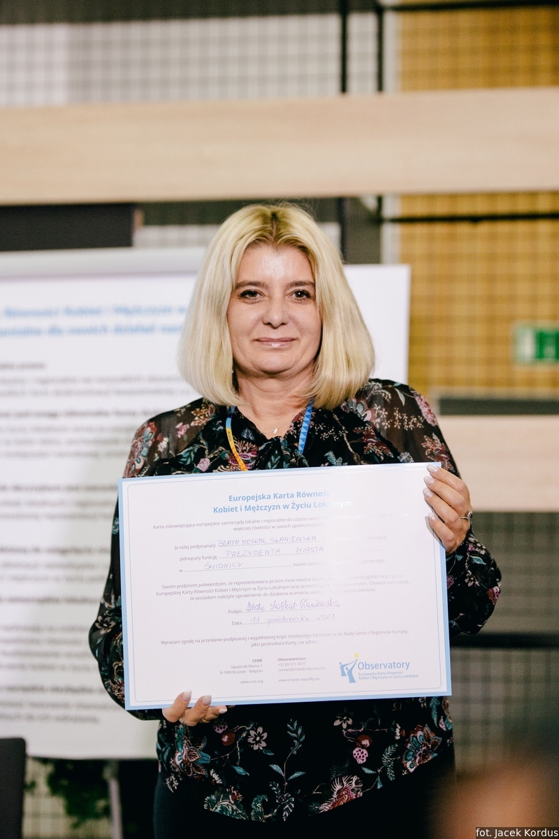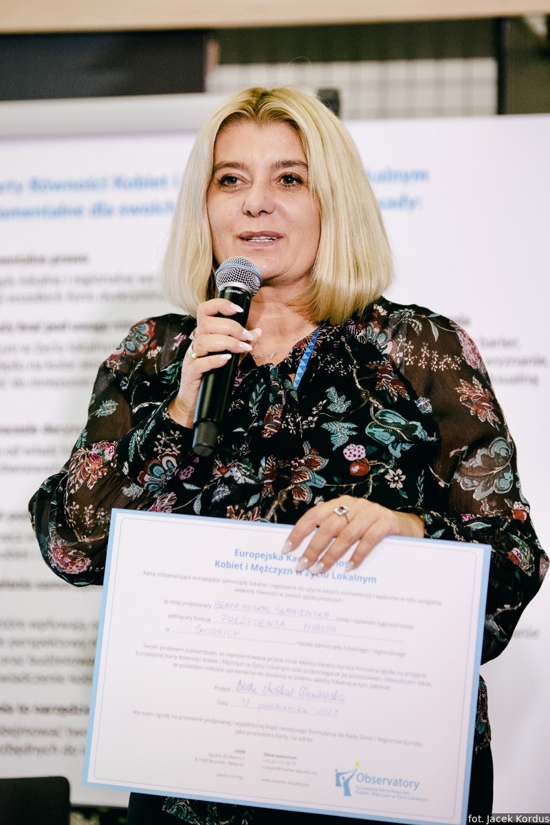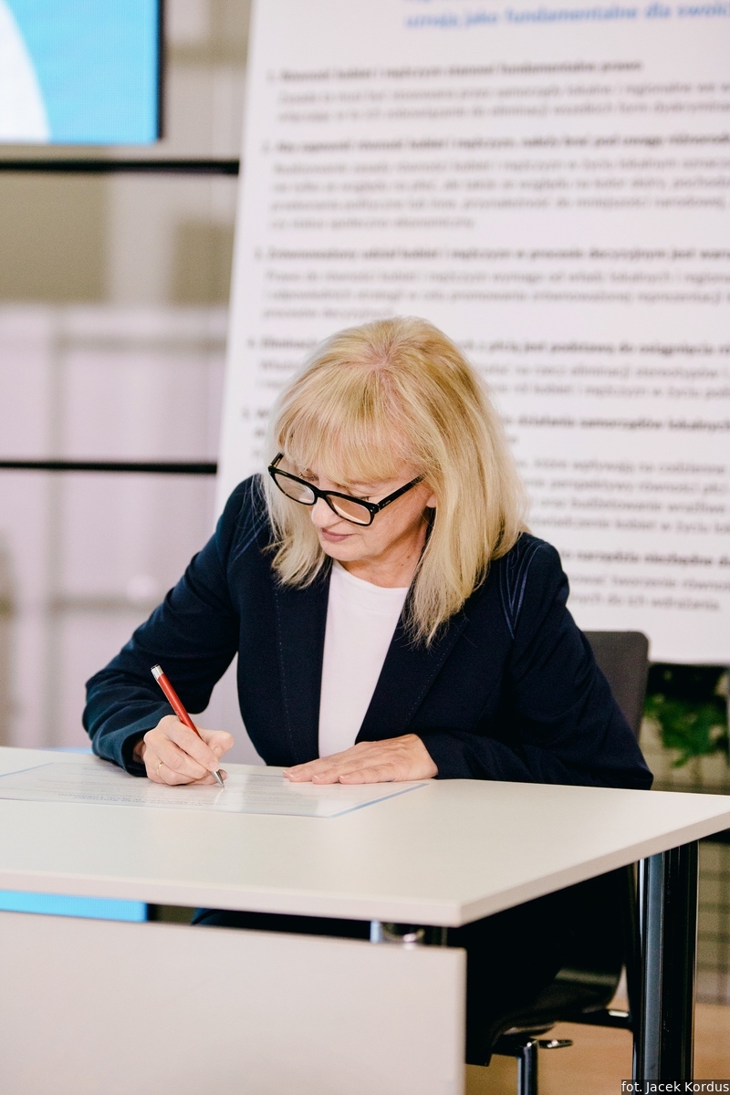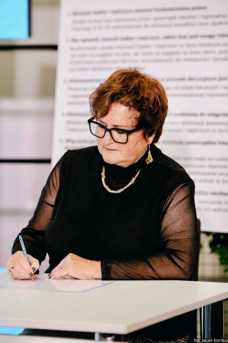 - Podpisując dzisiaj Europejską Kartę Równości Kobiet i Mężczyzn w Życiu Lokalnym dajecie jasny sygnał: jesteśmy za równością kobiet i mężczyzn na wszystkich szczeblach i w każdej dziedzinie życia. Jesteście państwo liderami i promotorami kluczowej europejskiej wartości i wielkiej idei, która przeobrazi się w realne i konkretne działania w waszych samorządach – mówiła do samorządowców zgromadzonych na uroczystości Marta Mazurek, radna Rady Miasta Poznania, przedstawicielka Związku Miast Polskich w Komisji Stałej ds. Równouprawnienia CEMR.