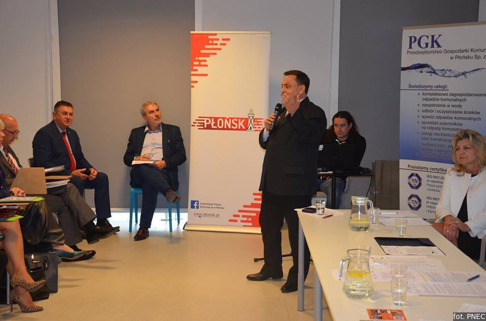 Szanse i zagrożenia we wdrażaniu GOZ omówił Dariusz Matuszewski, Prezes Zarządu PGK w Płońsku Sp. z o.o., natomiast Beata Klik, kierownik Referatu Odpadów, Ochrony Środowiska i Gospodarki Komunalnej UM w Płońsku, przedstawiła innowacyjny pojemnik na odpady elektroniczne. Wkrótce w kilkunastu gminach członkowskich Mazowieckiego Stowarzyszenia Gmin na Rzecz Rozwoju Społeczeństwa Informacyjnego (MSSI) w ramach projektu norweskiego pojawią się również takie specjalistyczne pojemniki.