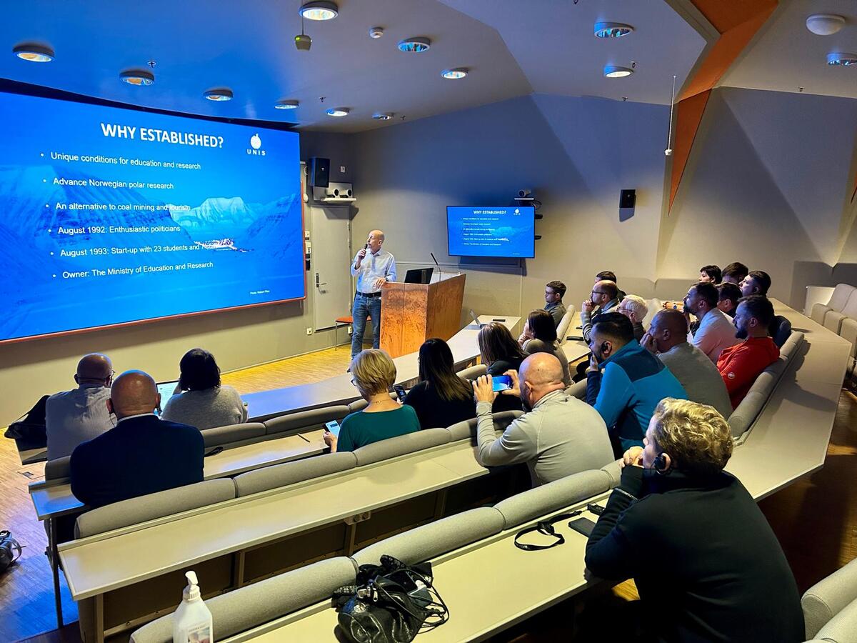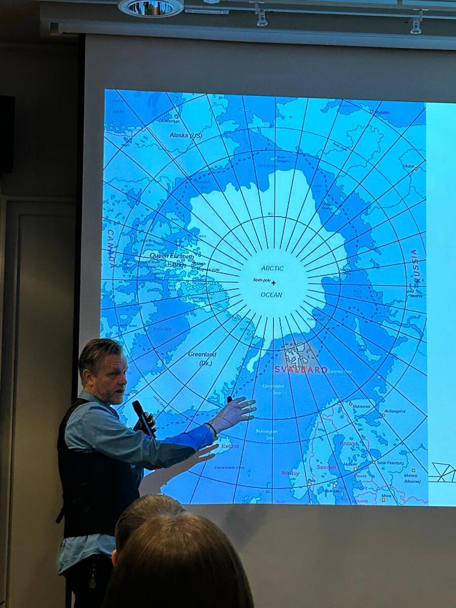 Gości powitał burmistrz Longyearbyen Leif Terje Aunevik, który przedstawił wyjątkowy charakter i znaczenie geopolityczne archipelagu Svalbard. Podkreślał również, że interakcje między Norwegami a osobami z innych państw są wyjątkowo harmonijne, a język angielski pełni funkcję wspólnego języka komunikacji. Z punktu widzenia Norwegów kluczowym aspektem jest zachowanie norweskiej tożsamości i tradycji w regionie, który ma istotne znaczenie strategiczne i klimatyczne. Norwegowie są świadomi rosnącego wpływu międzynarodowych interesów, zwłaszcza w kontekście obecności Rosjan i strategicznego położenia Svalbardu. Rząd norweski uważa, że wzrost liczby ludności może generować dodatkowe koszty, szczególnie jeśli chodzi o dotacje na infrastrukturę i utrzymanie zasobów. Burmistrz wspominał, że miasto ma bogatą ofertę dla młodzieży, obejmującą szkoły kulturalne, sale sportowe, kluby muzyczne, galerię sztuki i bibliotekę. Dzięki temu Longyearbyen zapewnia wysoki poziom aktywności i integracji społecznej, zwłaszcza dla młodszych mieszkańców. Poruszył także kwestię zarządzania Svalbardem oraz rolę gubernatora jako przedstawiciela władzy centralnej w zakresie nadzoru i koordynacji działań kryzysowych.